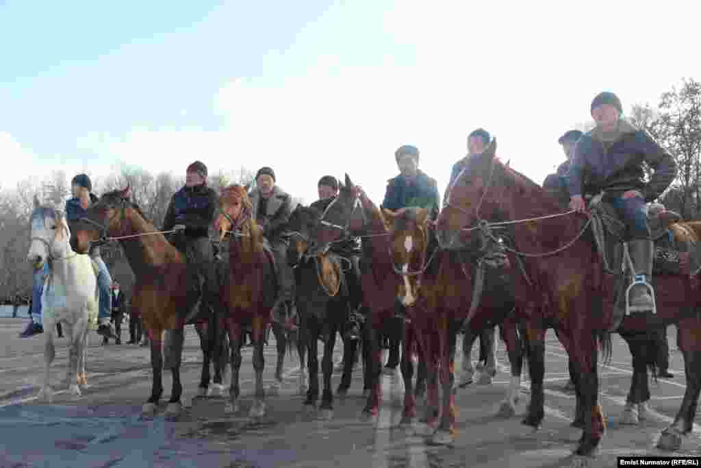 К митингующим на центральной площади Оша присоединились конники. Как сообщает корреспондент «Азаттыка» с места событий, на площадь прибыли около 20 всадников.
